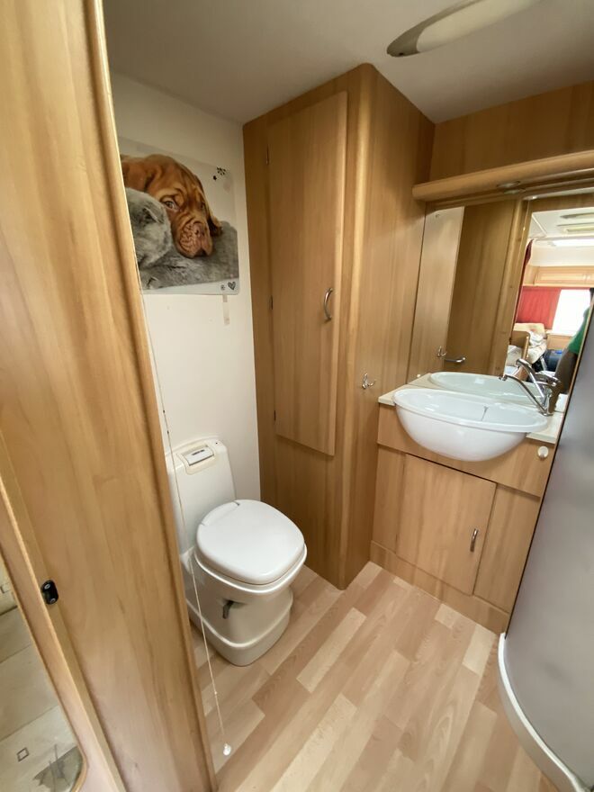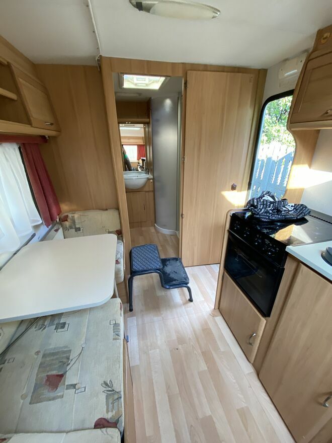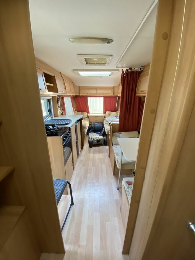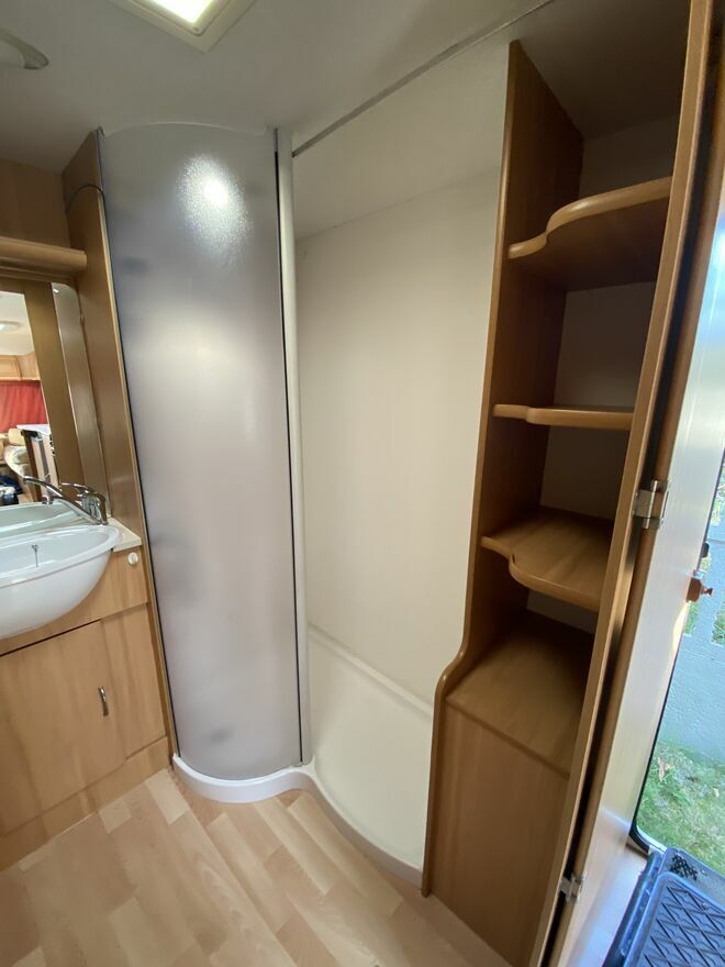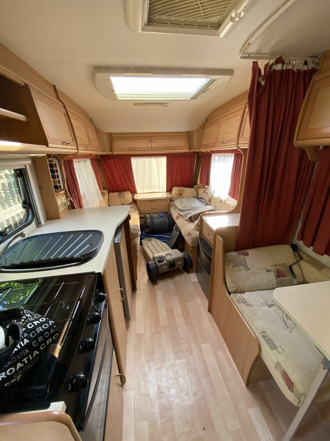 Wyposażenie: mover,rolety i moskitiery w oknach,duże okno dachowe, przestronna łazienka z osobnym prysznicem,łóżko piętrowe,przedsionek,ogrzewanie,ciepła woda,przetwornica prądu,solary.