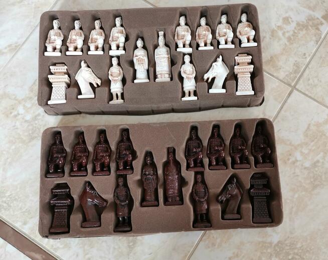 Szachy figurowe kolekcjonerskie Terakotowa armia Materiał żywica Wysokość króla 9cm Marka CELEMELA W ...